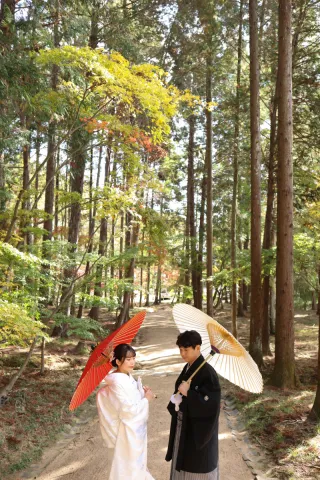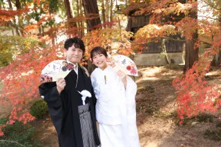 紅葉したもみじにお2人が囲まれて、よりお写真映えしますね。