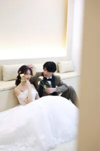 ドレスにつきましても、王道のウエディングドレスを身にまとい、チャペルでのお写真撮影や、カラードレスでより華やかに、お好きな色味とご新郎様とのコーディネートでおふたりらしさ溢れる撮影も素敵ですよね