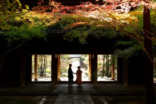 シルエット風のお写真! もみじのアーチがお2人をより引き立たせてくれる