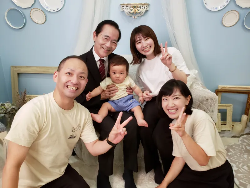 ご結婚式の時から撮影を担当させていただいておりますカメラマンの酒本も一緒に思い出の1枚です!この日から毎年、家族写真の撮影にお越しくださっていて。つくづく自分は、幸せ者だな・・と思います。本当にありがとうございます!