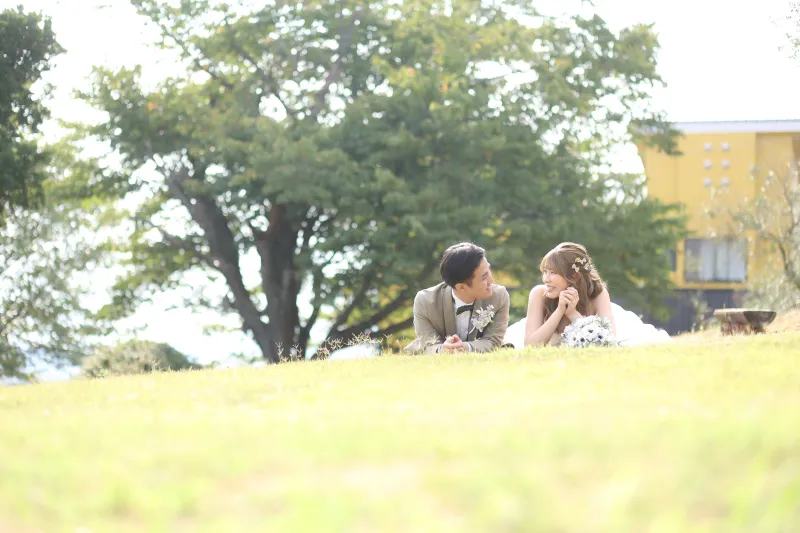 続いては、オリーブ園や公園、山の撮影で人気なヘアスタイルです*
