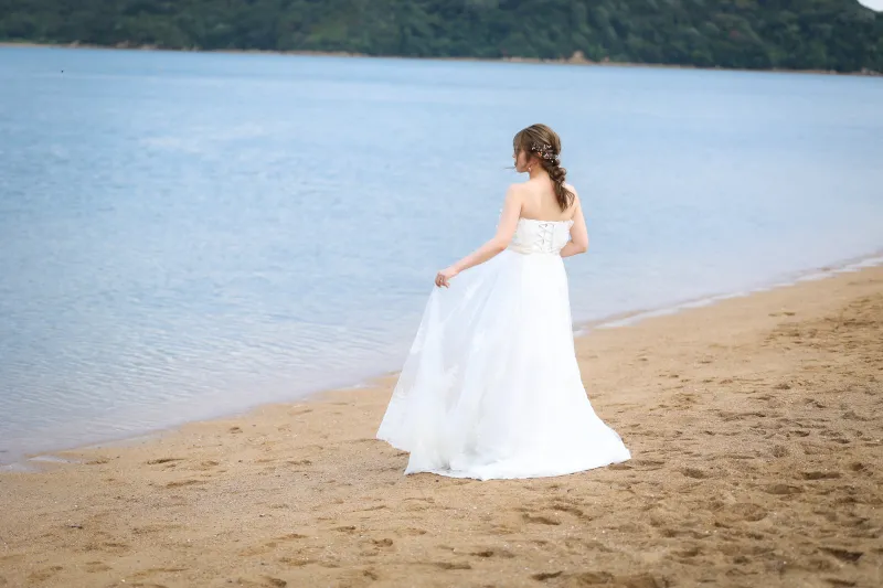 海の撮影では、編みおろしや玉ねぎヘアなど、ダウンスタイルでも