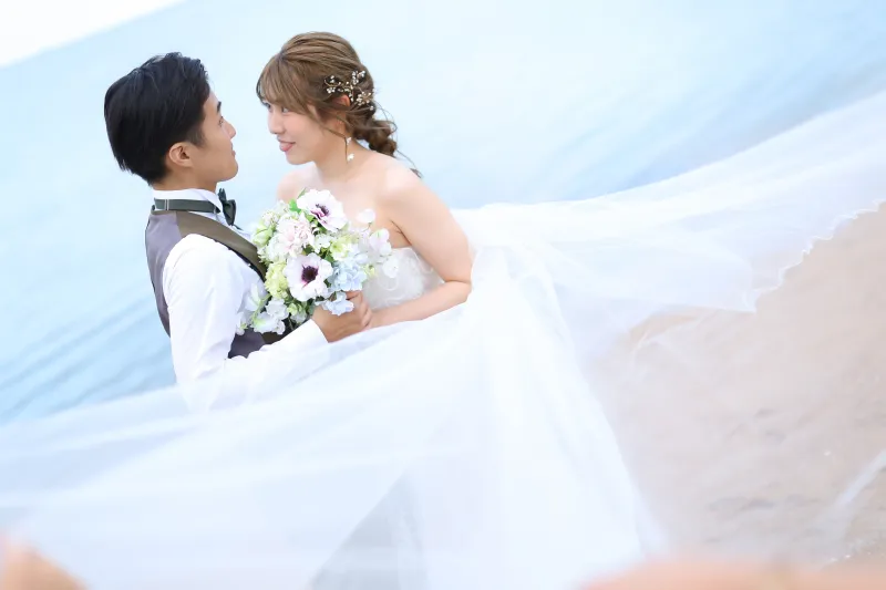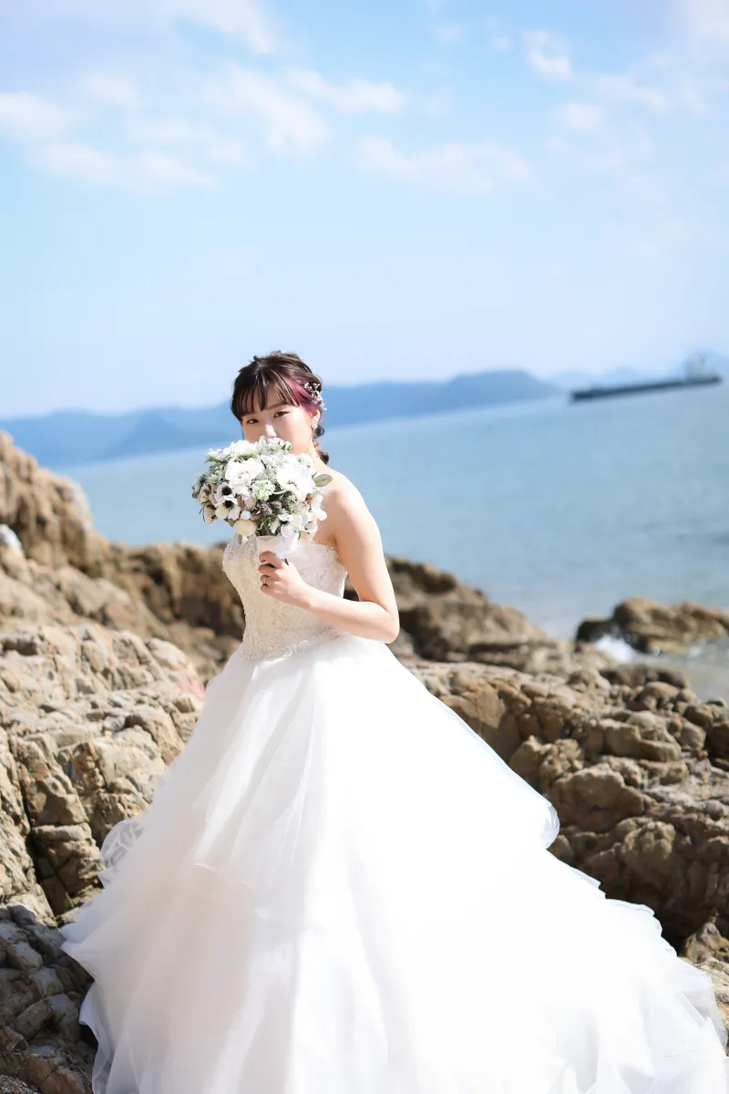 海辺は風が強く、お顔にも髪の毛がかかってしまうため、