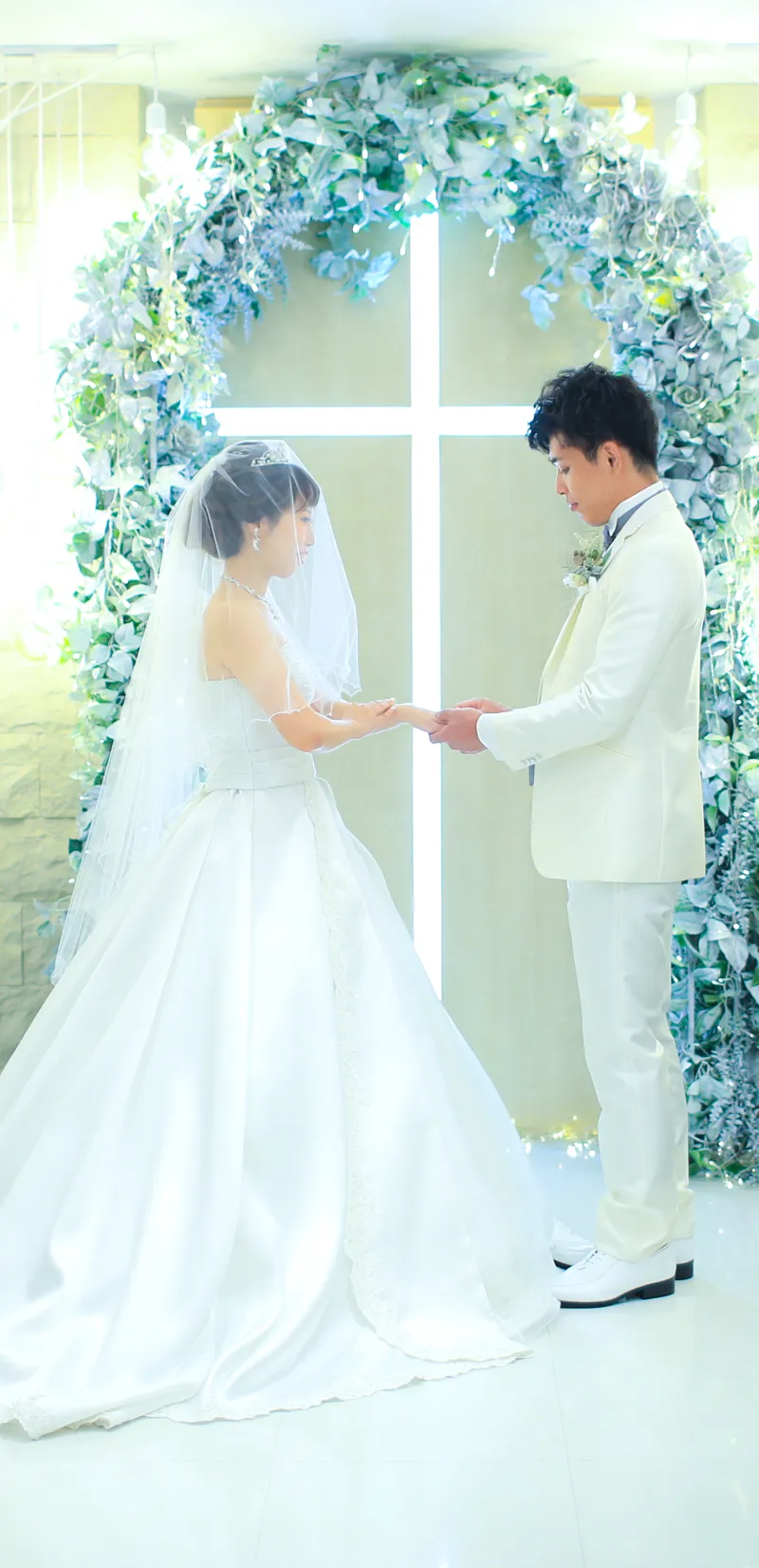 模擬挙式では、新郎新婦役のモデルさんが挙式の入場から退場まで、一通りの運びを行ってくださいます