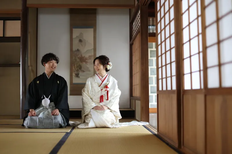 和装の五点小物には懐剣、筥迫、末広、抱え帯、丸ぐけ帯締めが