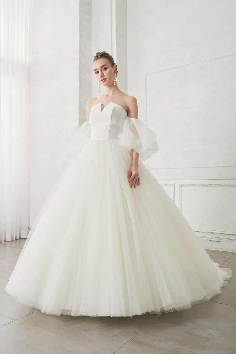こちらも新作ドレスで、パフスリーブが取り外し可能となっており、2WAYでご使用いただけます♪