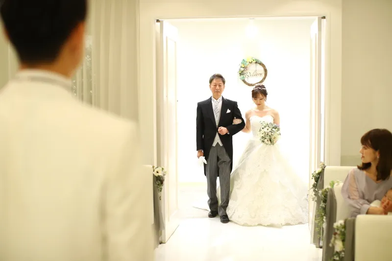 おふたりのご入場のシーンから指輪の交換、ベールアップ、ウエディングキスなど、、