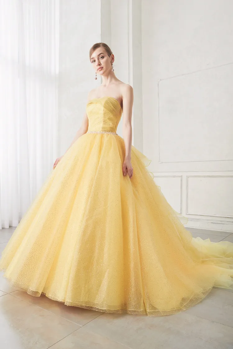 ぱっと目をひく可愛らしい黄色ドレス。