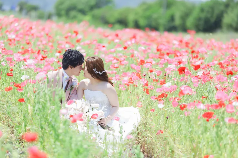 1面お花畑の中でドレス撮影は憧れですよね♡