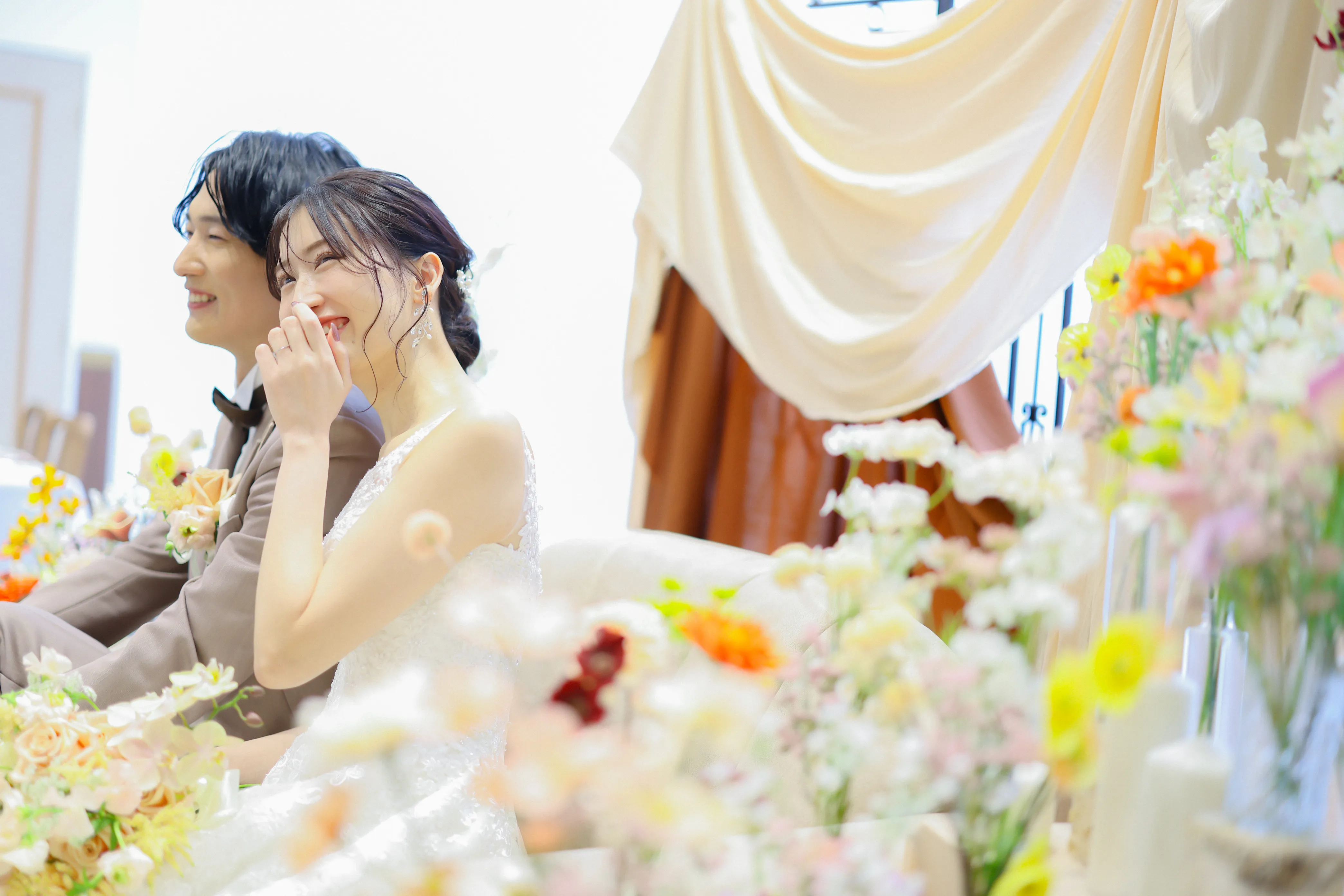 模擬挙式では、新郎新婦役のモデルさんが入場~退場まで行ってくださいますので、ゲスト様目線でご覧いただけるのも魅力の1つです!