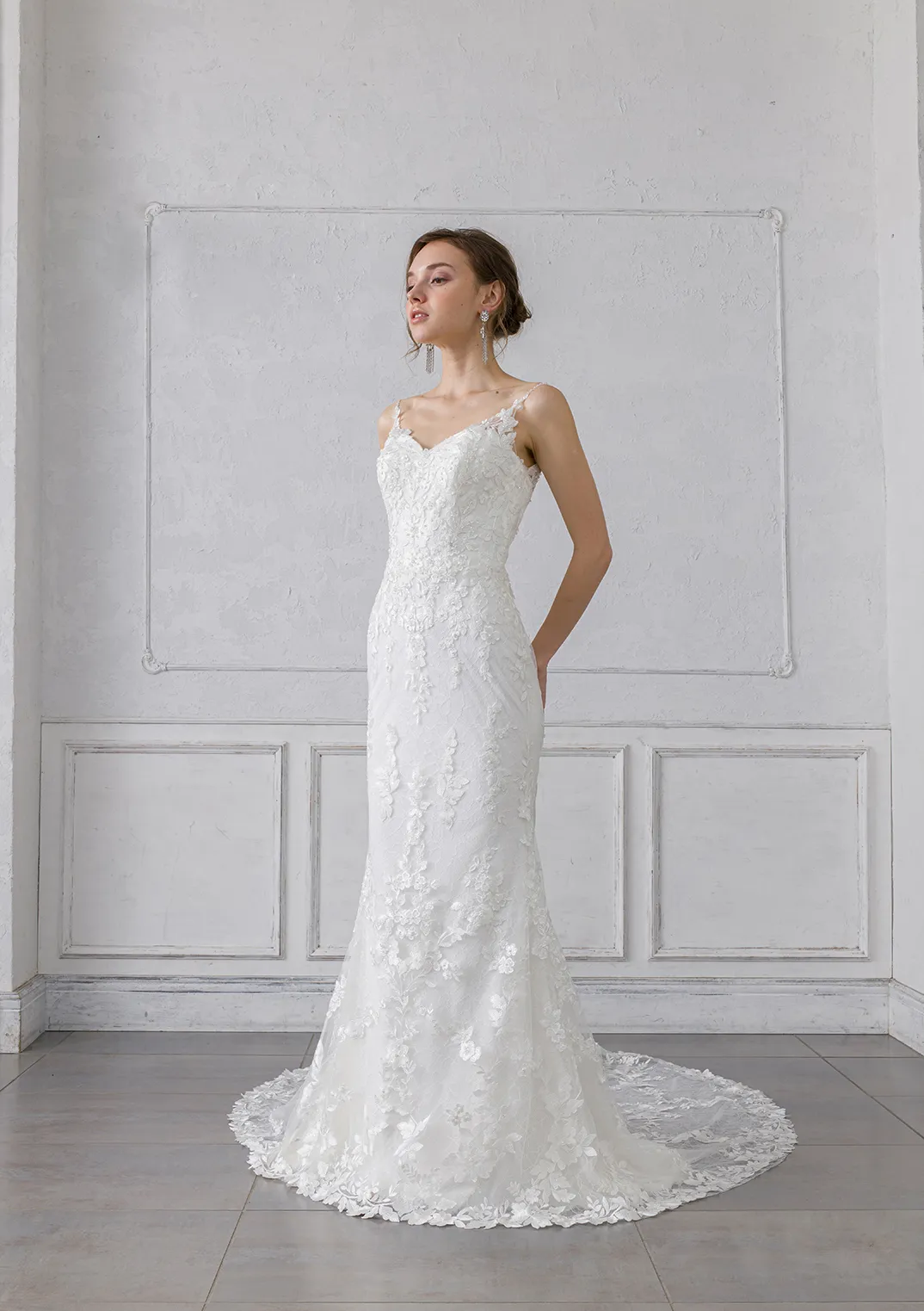 本日は、キレイ系が好きな花嫁様にスレンダーなドレスをいくつか