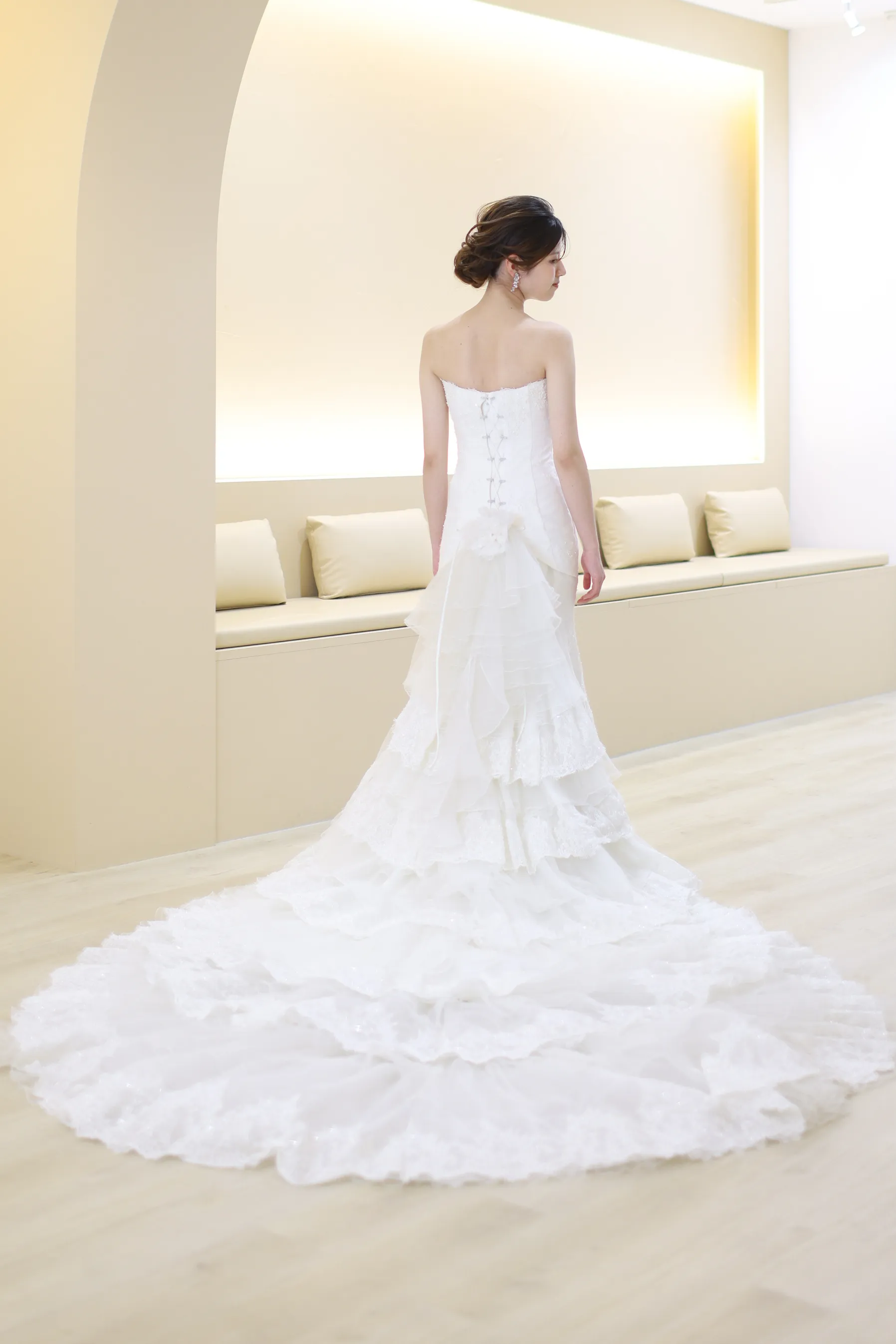 お裾も長く広がっている為、正面と後ろ姿、どちらもお写真映えします♪